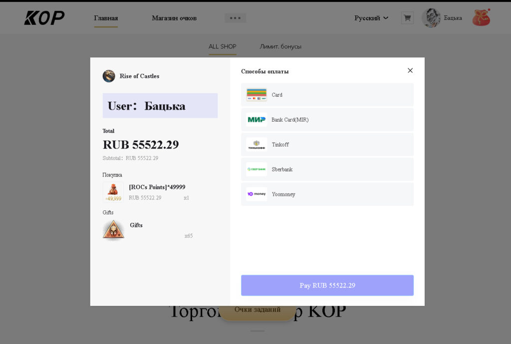 2. Пользуйтесь Возможностями Платежей: После привязки вашего аккаунта к России или Беларуси, вам должна стать доступной карта Мир, Тинькоф и д.р. и все необходимые опции для внесения платежей через интернет-магазин «Rise of  Castles».